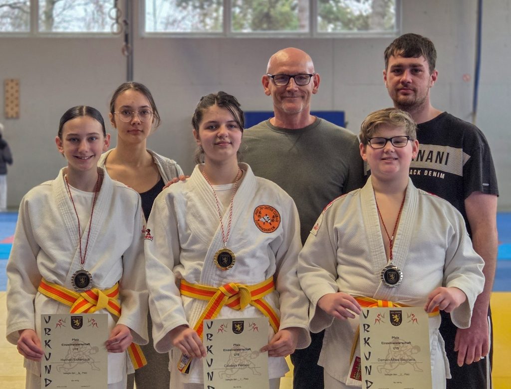 Hannah erkämpfte sich nach zwei Kämpfen den Vize-Pfalzmeistertitel (-44 kg). Auch Damien wurde nach zwei Kämpfen Vize-Pfalzmeister (+66 kg). Cataleya krönte ihr erstes U15-Jahr mit dem Pfalzmeistertitel (+63 kg). Damit holten alle drei U15-Judoka einen Podestplatz.